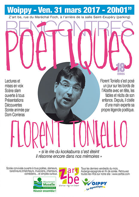 Vendredi 31 mars 2017, les membres du collectif Théophile Coinchelin et Mathieu Olmedo étaient à Woippy, dans les locaux de l’association Z’art be (rue du maréchal Foch) pour assister à une lecture publique exceptionnelle. Le dernier vendredi de chaque mois, Dom Corrieras, grand manitou de la langue, organise les rencontres poétiques de Woippy au cours desquelles un invité de marque présente son travail devant une foule en liesse.