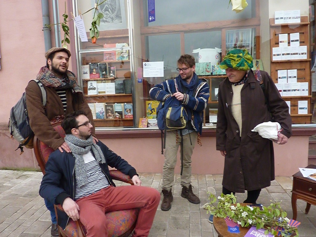 Enfin retour à la librairie ; lectures endiablées dans le bar de Marie-jeanne, de quoi rameuter plein de monde pour notre présentation à la librairie, pari réussi !