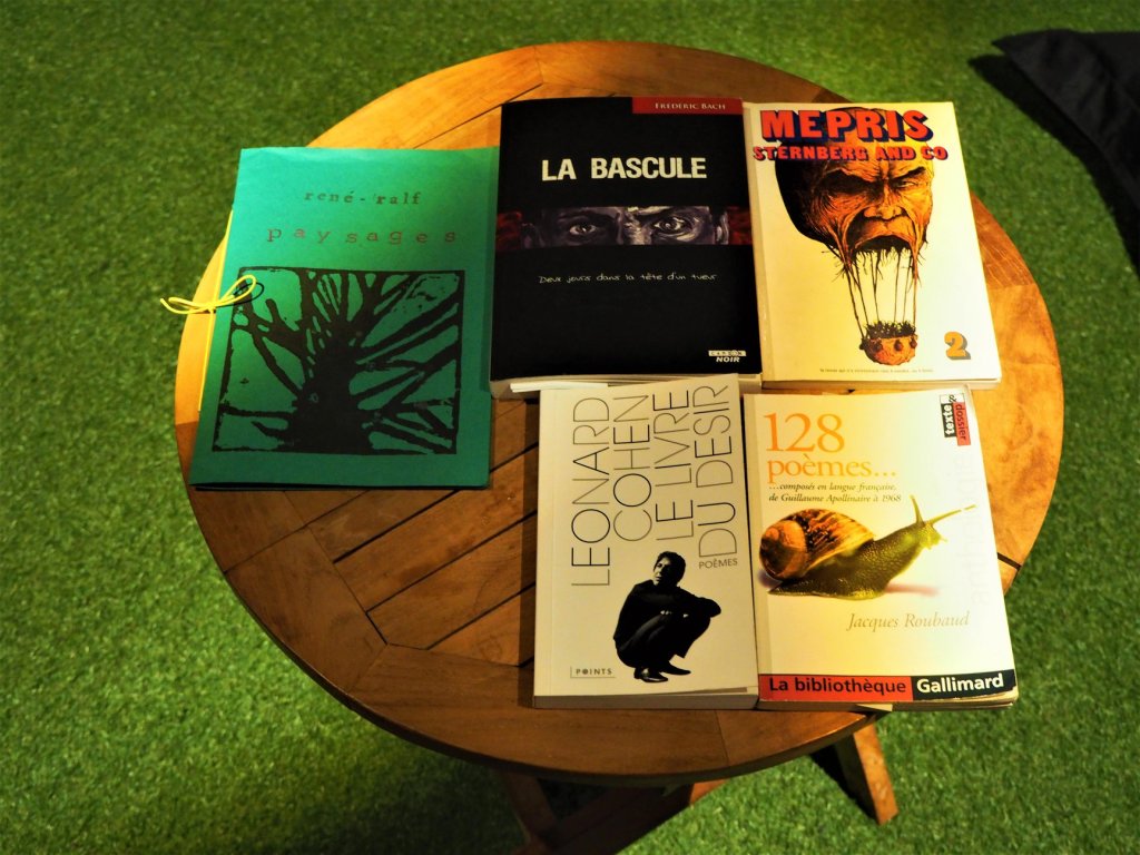 Ce samedi, quelques œuvres personnelles mises en voix, le roman « La Bascule » de Frédéric Bach, le recueil en construction de René Ralf. Mais comme toujours, d’autres voix aussi. Celle venue d’un autre temps, du XVIIe siècle en l’occurrence, avec « Le paresseux » de Saint-Amant, cher à Alexandre Paillard et celles venues d’outre-tombe et qui pourtant résonnent toujours en nos oreilles charmées : Leonard Cohen et son « Livre du désir » (« Book of longing », 2006) et un poème de Bukowski lu en VO. Et comme nous ne renions pas un peu de provocation et de politiquement incorrect, Frédéric nous a présenté sa dernière trouvaille : le deuxième numéro de « Mépris » (la revue qui n’a strictement rien à vendre, ou à louer), revue éphémère du début des années 70. À quoi s’est ajouté un petit débat sur la poésie engagée suite à la lecture du poème « Vingt ans après » d’Aragon et le dézingage en règle de Benjamin Péret dans son texte « Le déshonneur des poètes » en 1945 (« Les ennemis de la poésie ont eu de tout temps l’obsession de la soumettre à leurs fins immédiates, de l’écraser sous leur dieu ou, maintenant, de l’enchaîner au ban de la nouvelle divinité brune ou « rouge » – rouge-brun de sang séché – plus sanglante encore que l’ancienne. »). La bonne routine quoi !