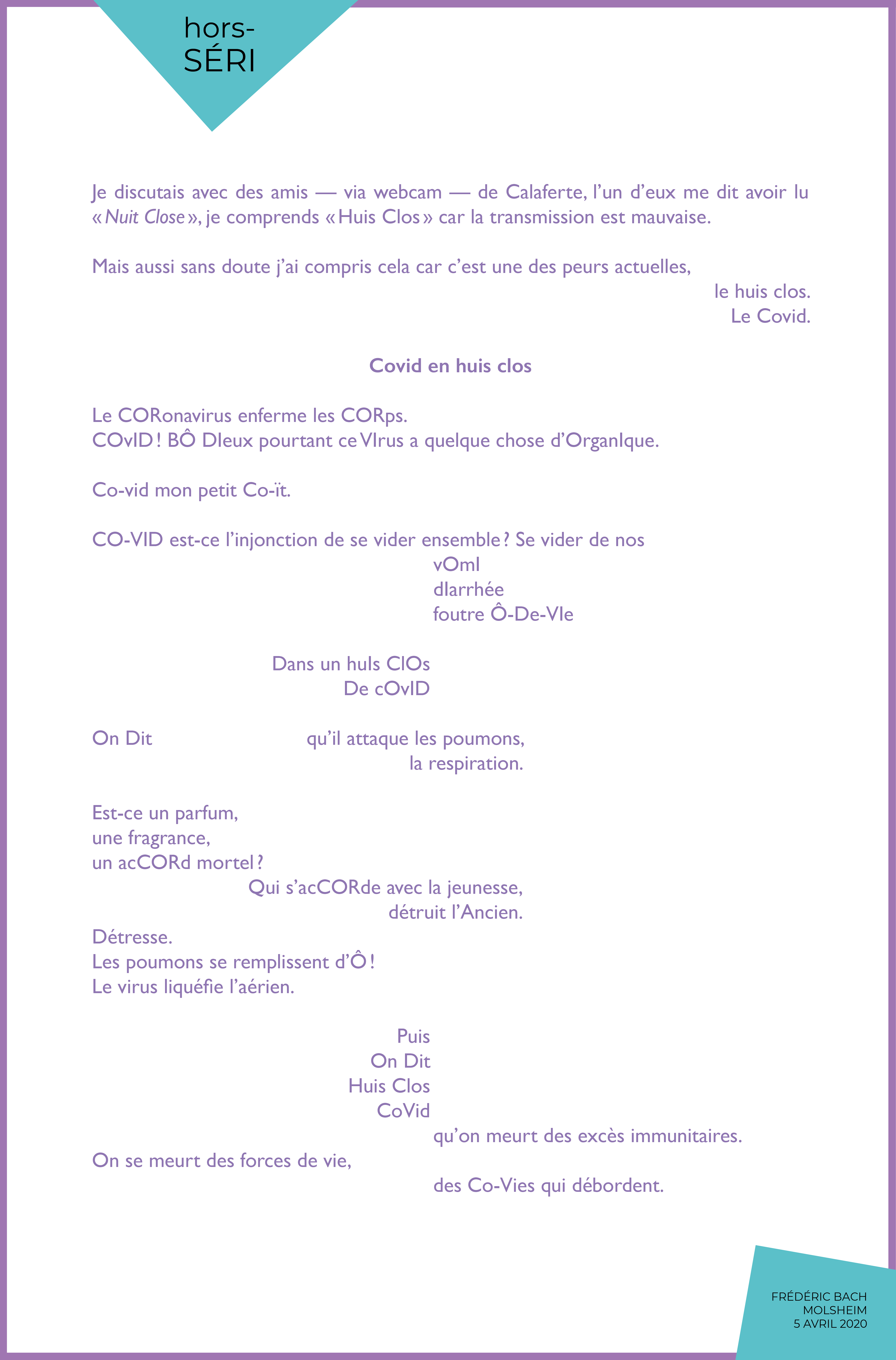 […] passant | 21 avril 2020 | Frederic Bach 21 avril : Frédéric Bach Publication d’un dessin et d’un texte dans le hors-SÉRI de REVU la revue de poésie […]