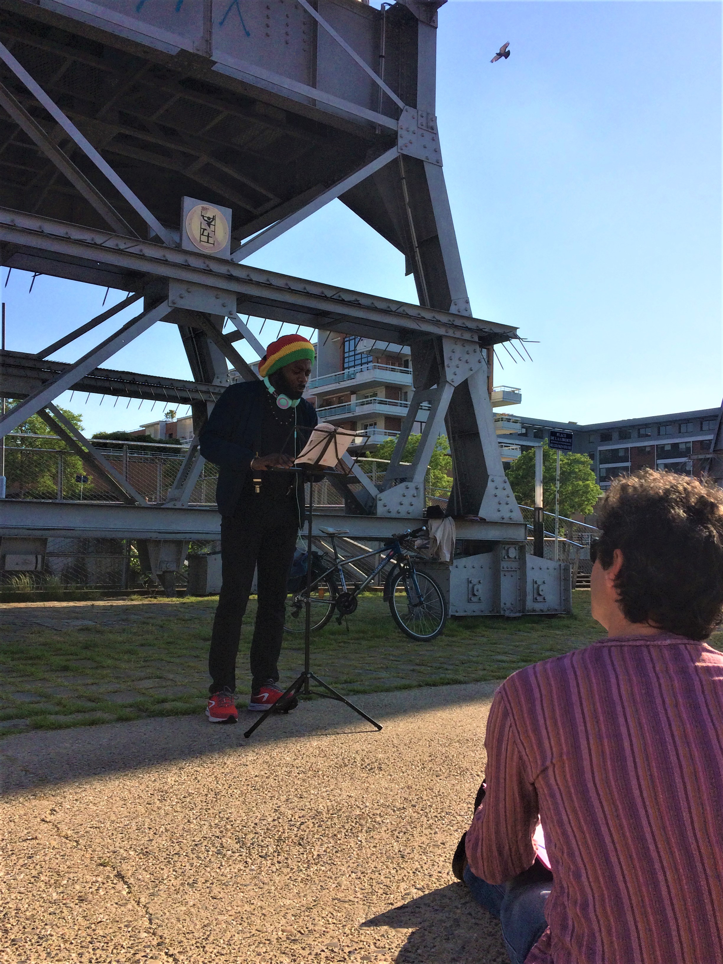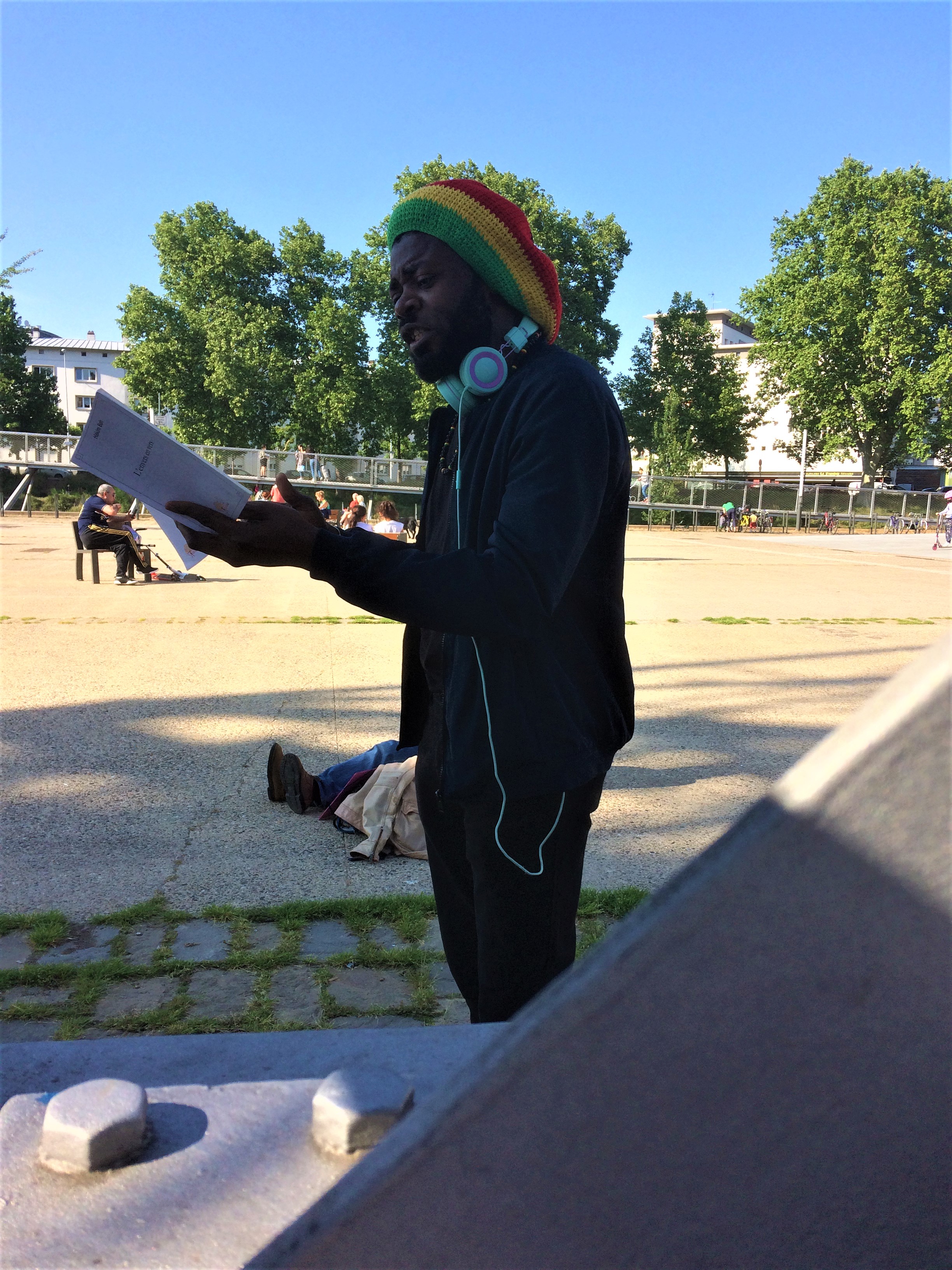 Grand bol d’air pour le Mot Ment, qui, faute de pouvoir retrouver son repaire au bar à sieste du Mandala, a déclamé ses vers du côté du parvis de la médiathèque Malraux. Extérieur + groupe de dix participants + échanges de poèmes mais pas d’étreintes – les conditions n’ont en rien terni une séance baignée par le soleil et le bonheur de se retrouver. Comme à l’habitude, Hugues, Fred, Alex. S, René-Ralf, Michel et Alex P. ont partagé leurs dernières productions. On a aussi découvert le talent d’Achille qui nous a lu des poèmes tirés de « L’envers en vers » d’Hakim Bah. Ce fut également l’occasion de découvrir des poèmes du recueil « Je suis debout » de Lucien Suel. On remet ça samedi prochain ?