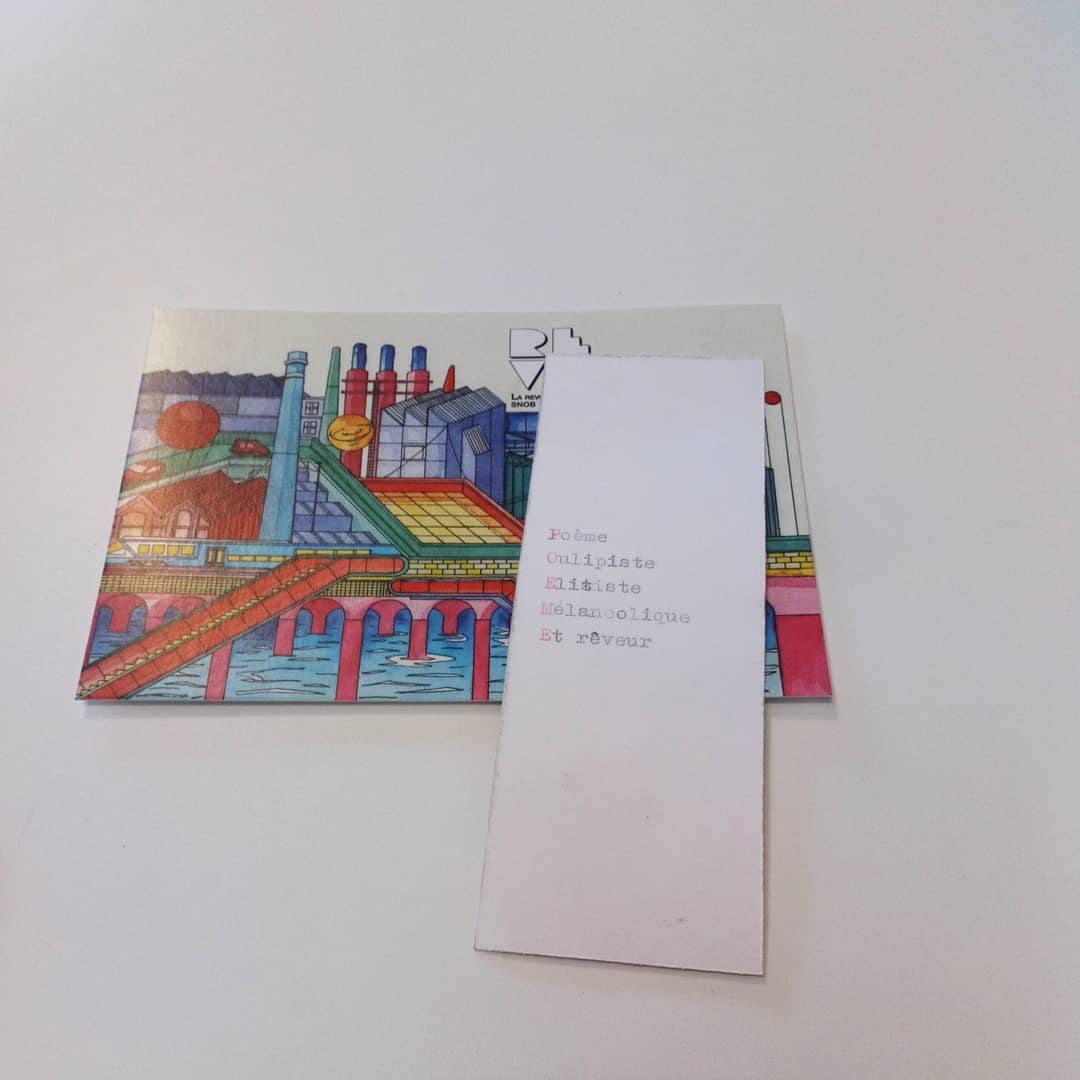 Garage Poète en vue ! Voilà comment nous accueillait Baccarat, le bourg cristallin dont le nom résonne de Dubaï à Tokyo, en passant par New-York. C’est au bout d’un dédale de bitume que la médiathèque nous a laissé prendre place en son sein pour une après-midi d’ateliers d’écriture. En guise d’invocation aux muses, la voix conteuse nous a conduit•es aux origines du rire. Les enthousiastes participant•es ont alors entamé leur gestation dans le Cercle des fauteuils rouges, lieu propice à la préparation de recettes du rire. Comme les contractions commençaient à triturer nos ventres, nous nous sommes précipité.es dehors pour mettre à l’œuvre notre puissance abdominale. Alors que les oiseaux nous encourageaient de leurs vocalises, le travail a pu commencer : expulsant nos huhu-haha les plus vaillants, nous avons accouché d’une énorme tarte d’hilarité. Il ne nous restait plus qu’à confectionner les faire-part ! Direction l’atelier pour inscrire le désir sur des marque-pages. Le cliquetis des machines à écrire et le son feutré des tampons composaient une berceuse finale.