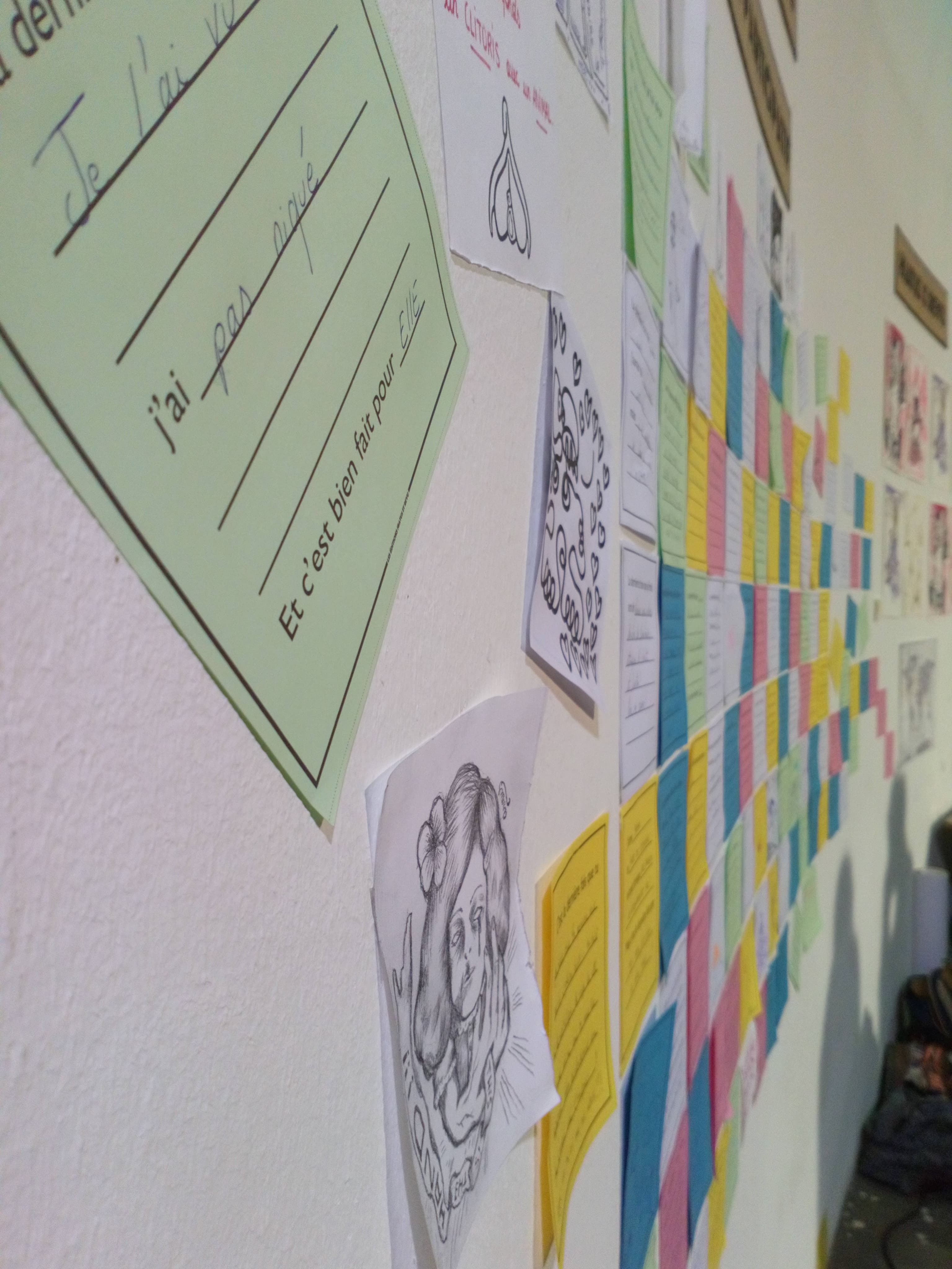 Au total, beaucoup de personnes se sont arrêtées pour parcourir le mur et écrire quelques mots ; environ 150 textes et dessins ont été collés ! En outre, nous avons proposé aux illustrateur·ices présent·es sur le P’tit Baz’art de dessiner leur dernière fois, dans l’idée d’une microédition mémorielle. Affaire à suivre donc !