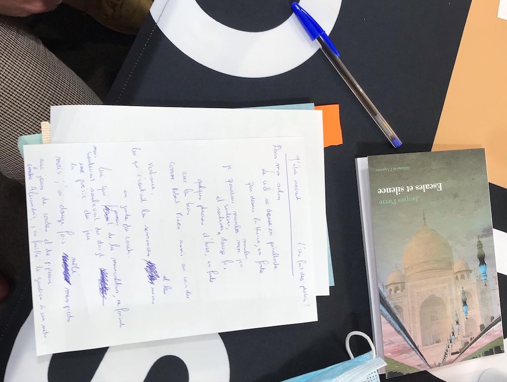 Richard ROGNET, auteur qu’on ne présente plus, s’est un peu livré, ainsi que son collègue d’écriture Jacques PIERRE, passionné de marathon, de voyages et de silence. Tous deux ont emmené les participants vers d’autres rives, d’autres langages, assistés de l’équipe de REVU, toujours prête à faire dire, nommer, raconter sous forme de jeux d’écriture, de drôleries, pour finir par un poème collectif…